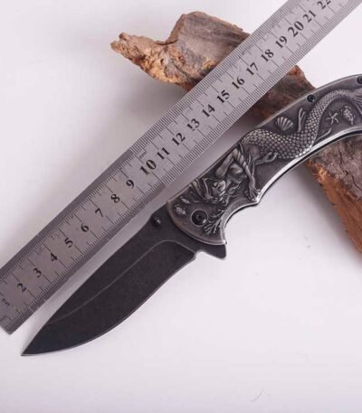 Professional Stainless Steel Stone Wash Blade Folding Survival Hunting Knife With Relief Handle